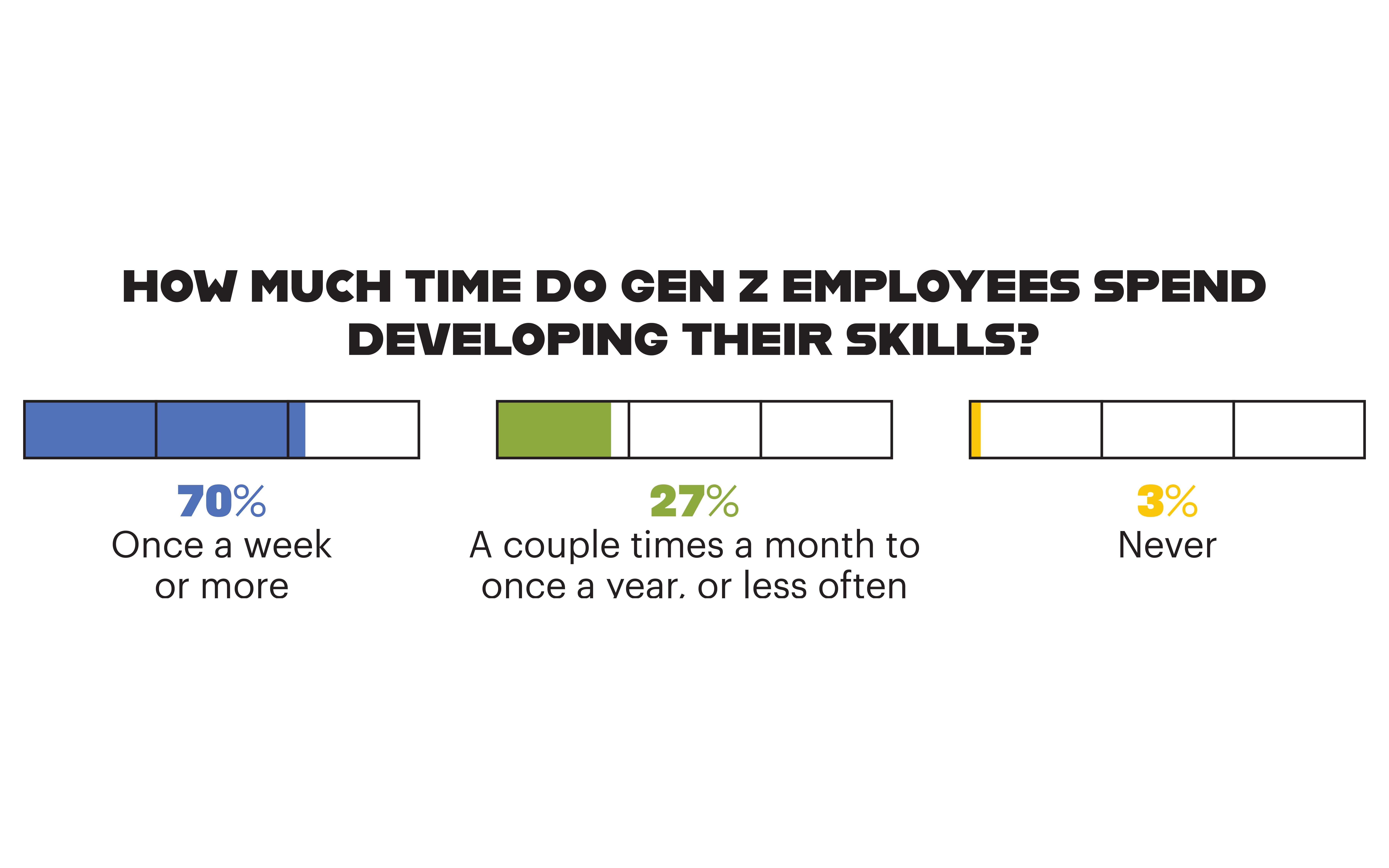 Another important thing to note is that their career goals align with the core values that many community banks also have. Deloitte found that 89% of Gen Z workers say purpose influences their motivation and engagement. They’re also eager to learn, with 70% saying they are developing skills to advance their career about once a week or more, compared with 59% of millennials.
